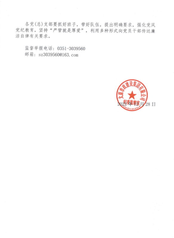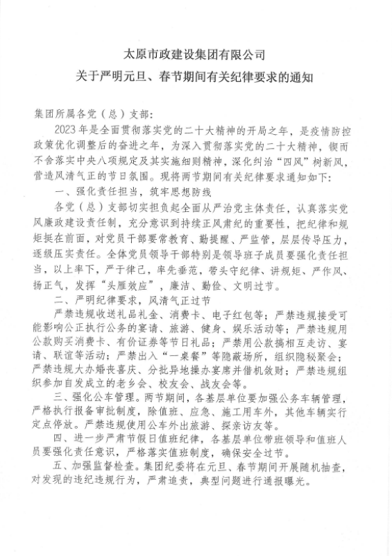 太原市政建設(shè)集團(tuán)有限公司關(guān)于嚴(yán)明元旦、春節(jié)期間有關(guān)紀(jì)律要求的通知