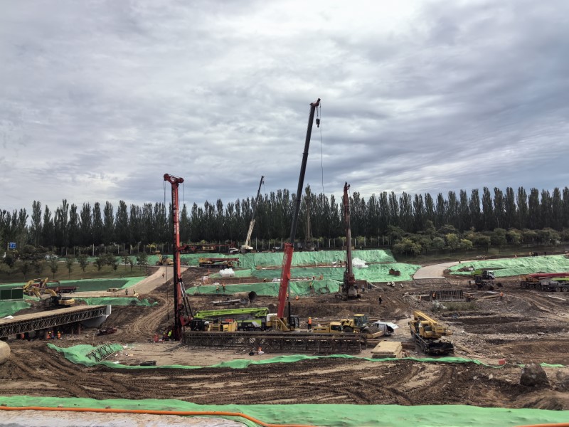 幸福橋設(shè)計為一座跨汾河大橋。項目部根據(jù)工程特點,將工程劃分為東西兩個工區(qū),分解關(guān)鍵節(jié)點工期目標(biāo),拆分成一般節(jié)點工期,再細(xì)化為每周、每日的進度計劃,層層細(xì)化,層層落實。同時,項目部安排道排、橋梁等專業(yè)施工隊,通過組織流水施工作業(yè),減少交叉作業(yè)影響,保證各工作面既滿負(fù)荷工作,又不互相干擾,加快施工進度。由于該工程施工范圍位于汾河兩岸,地質(zhì)情況比較復(fù)雜,地下水位高,地下土質(zhì)為卵石,開挖難度較大,施工人員先利用螺旋鉆機進行引孔,再采用“止水鋼板樁+拉森樁”的方式,起到有效防水和支護的效果。在進行橋梁基礎(chǔ)施工時,項目部采用正循環(huán)鉆孔灌注樁的施工工藝進行施工作業(yè),正循環(huán)鉆孔通過水泵壓送泥漿,從鉆桿柱中心進入孔底并返出,能夠快速完成鉆孔作業(yè),操作方式簡便,降低了施工難度?,進一步加快施工進度。針對工程重點難點,項目部還專門制定了《深基坑安全專項施工方案》和《高大模板支撐體系安全專項施工方案》,邀請專家進行論證,確保重點環(huán)節(jié)的施工質(zhì)量。
